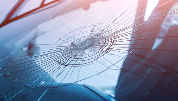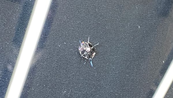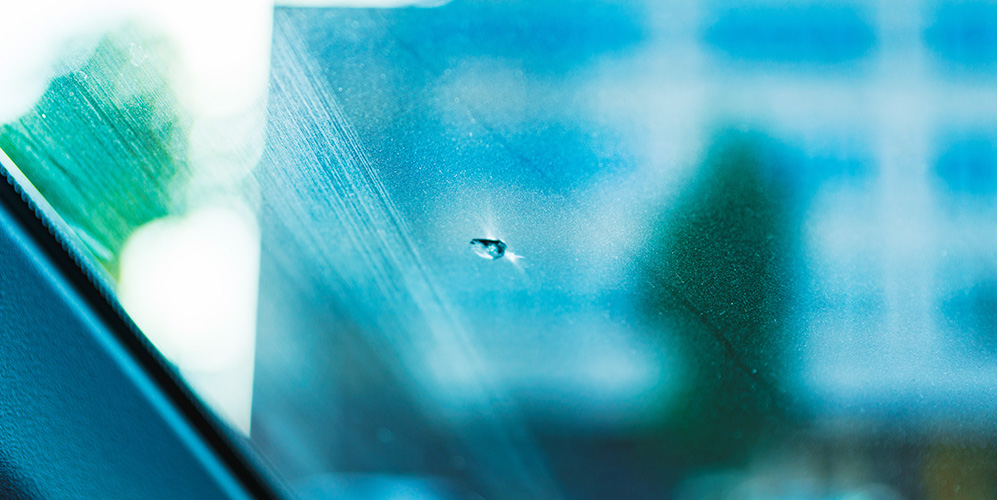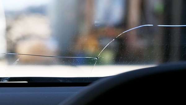 走行中、飛び石でガラスが割れたどんな小さなキズでも放置すると風圧、振動、温度差で傷が広がります。